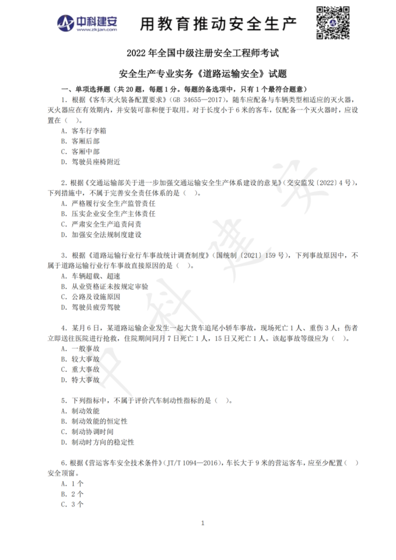 2025注安《道路運輸實務(wù)》2022試題.pdf