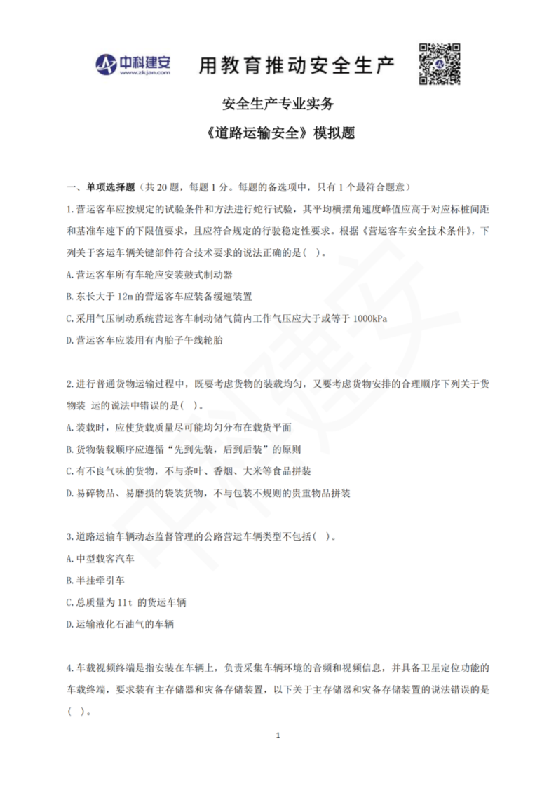 > 2025注安《道路運(yùn)輸安全》直播習(xí)題課-模擬題(題).pdf